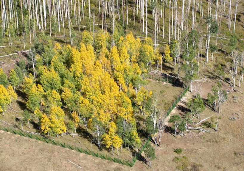 Managing to stimulate aspen regeneration is commonly the first step. In areas of livestock and wildlife use, however, the new growth will need some form of protection from critters. Methods range from herd management to physical barriers.